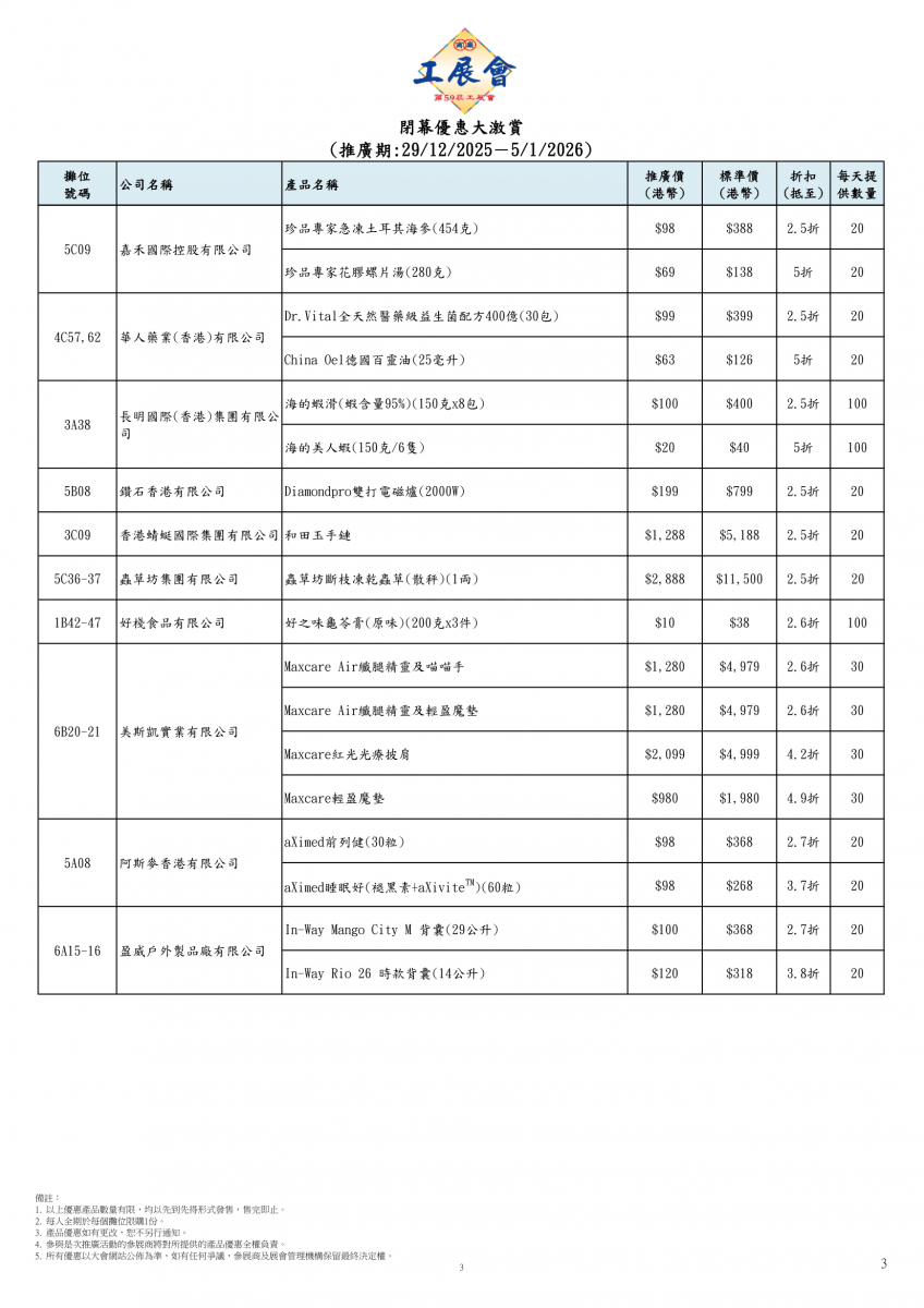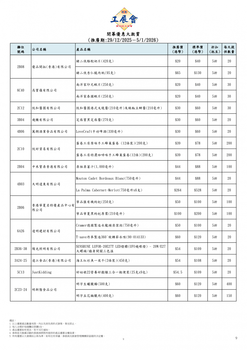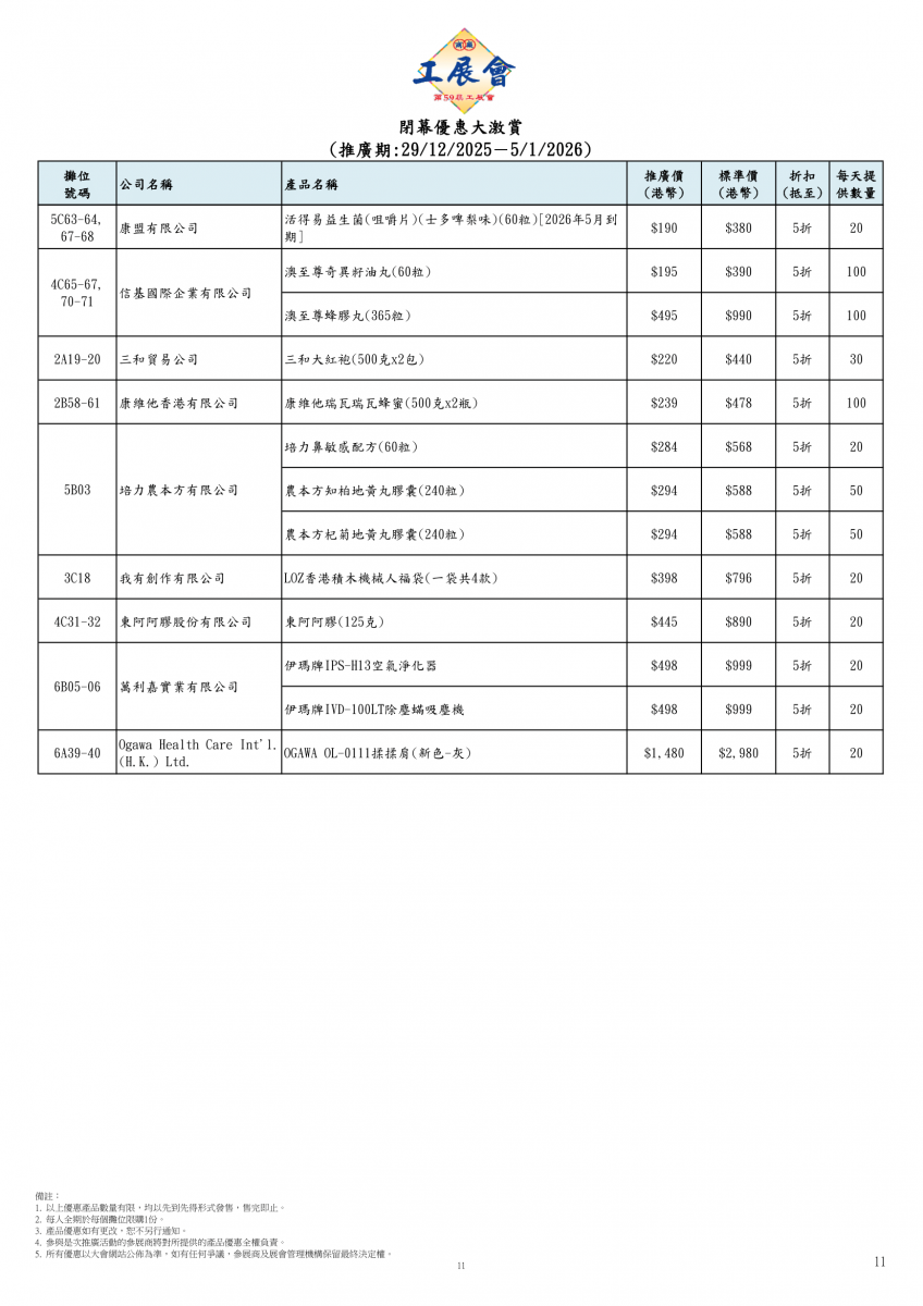 閉幕優惠大激賞